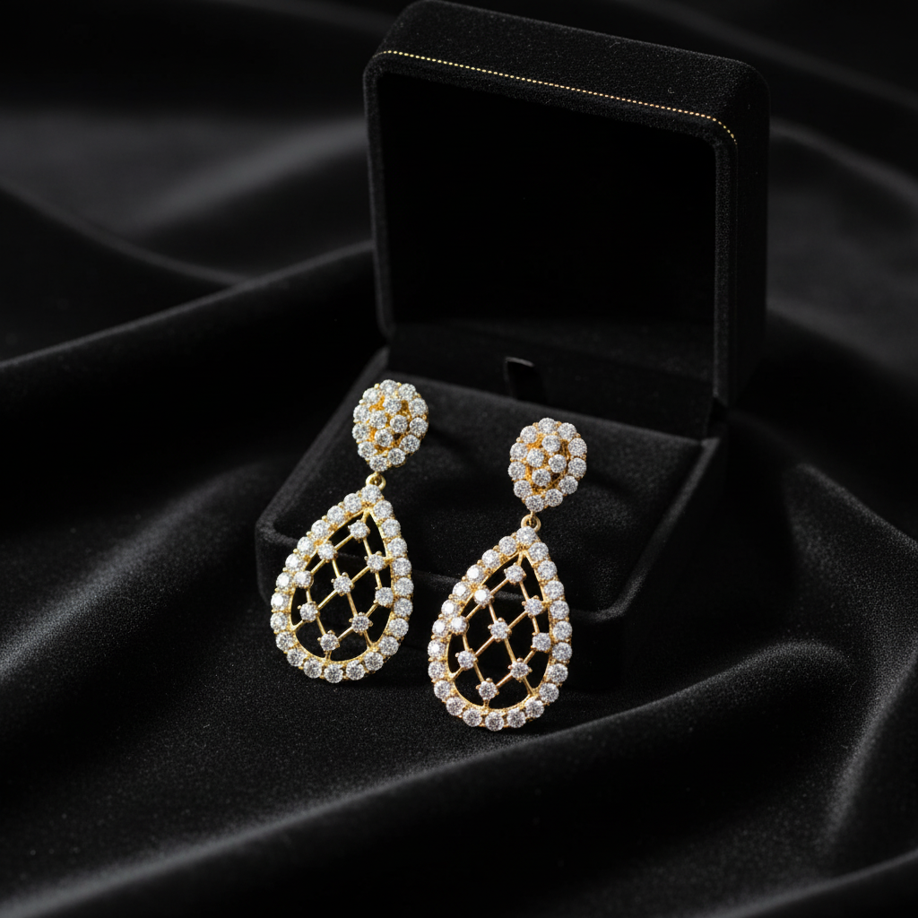 Inspired by timeless palace architecture and heirloom artistry, the Aurelia Lattice Drops celebrate the beauty of traditional gold weaving reimagined for the modern woman. The teardrop silhouette symbolizes grace, while the intricate lattice reflects centuries of regal craftsmanship.