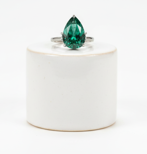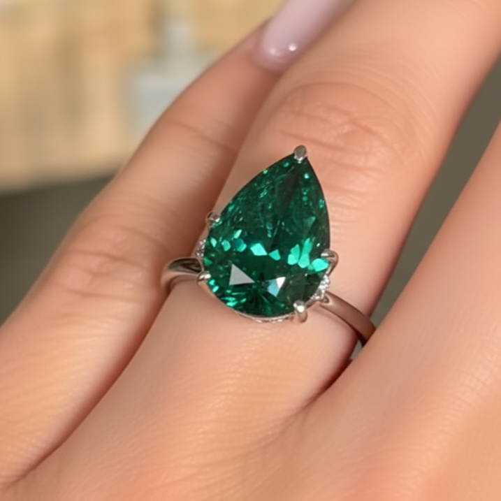 Designed to enchant, the Sapphire Emeraldveil Ring showcases a luminous pear-cut emerald-green sapphire, radiating depth and vitality with every movement. Set in a sleek white rhodium–plated band, the graceful teardrop silhouette elevates elegance while subtle zirconia accents add a refined shimmer. This ring embodies modern luxury infused with timeless, regal charm